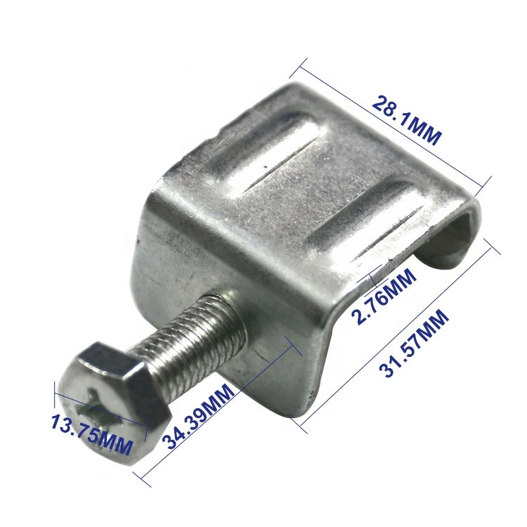Product : G-clamp / flange duct clamp for air duct Material : Galvanized steel sheet Application : Fixing flange in ventilation duct for HVAC system Surface treatment: Zinc coated Thickness: 2.0-4.5mm Color: Silver Size: M8x25x2.5, M8x25x3.0