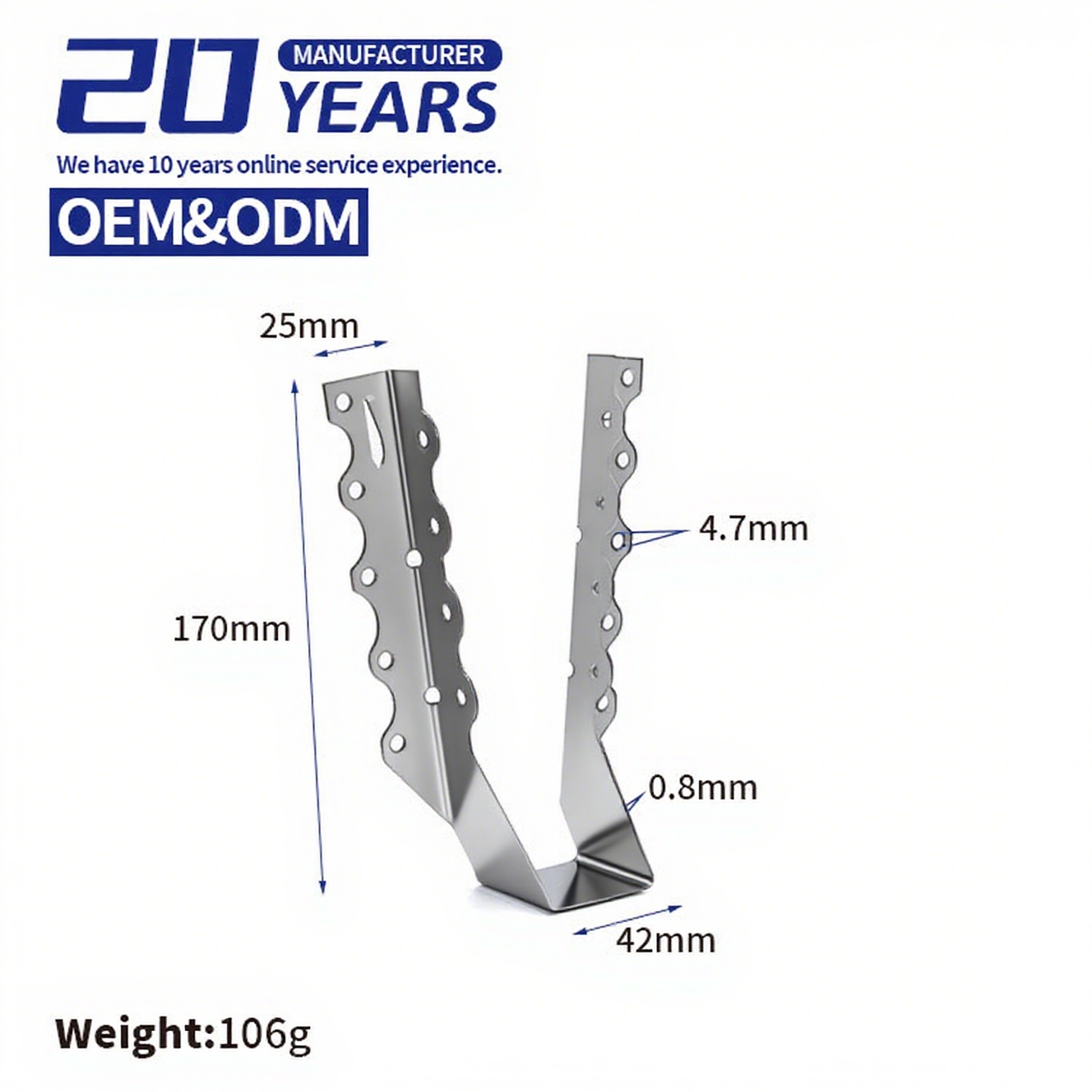 Ruichi Hardware is a company specializing in wood timber connector. It has more than 100 types of products in production and sales. We can provide corresponding solutions according to your house drawings, so as to realize one-stop purchase service of wooden house connectors. we can also customize products including size, material, surface treatment, etc.