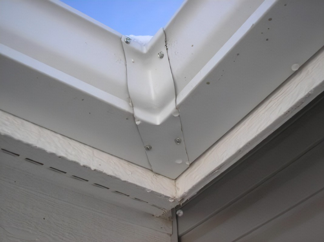 Gutter miters are a two-piece system manufactured from aluminum. Box miters attach two gutter runs at a corner,creating two seams. These are fast and