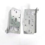 The garage door bottom brackets attach to the bottom corners of the bottom section. The corner brackets hold the bottom roller in place and the extension spring cable or torsion spring cable is attached to the bracket. It’s not uncommon after many years and due to the fact that the bottom brackets are next to the garage floor water & moisture can cause the brackets to rust and eventually break.Garage door bottom corner brackets – for residential or light commercial garage doors Compatible with garage doors up to 2″ thick Milford pin cable attachment (inside hookup loop style cable attachment)For use with 2″ track.