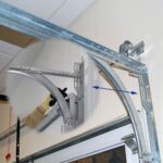 Garage door universal slotted flag bracket, mount to the wood framework with wood lags and connects the horizontal track with the vertical track.