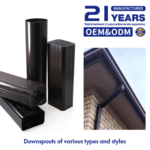 Downspouts which are extruded from aluminum, it can quickly direct rainwater from gutters to ground drains or underground pipe networks. For square downspouts, the sizes 50*80mm, 60*80mm, 80*80mm, 100*80mm are available with thicknesses of 0.9mm and 1.2mm. For round downspouts, the diameters are 50mm, 75mm, 100mm, 150mm with a thickness of 0.9mm. Customazation can also be provided based on drawings to ensure the product materials and sizes exactly meet the different environments.