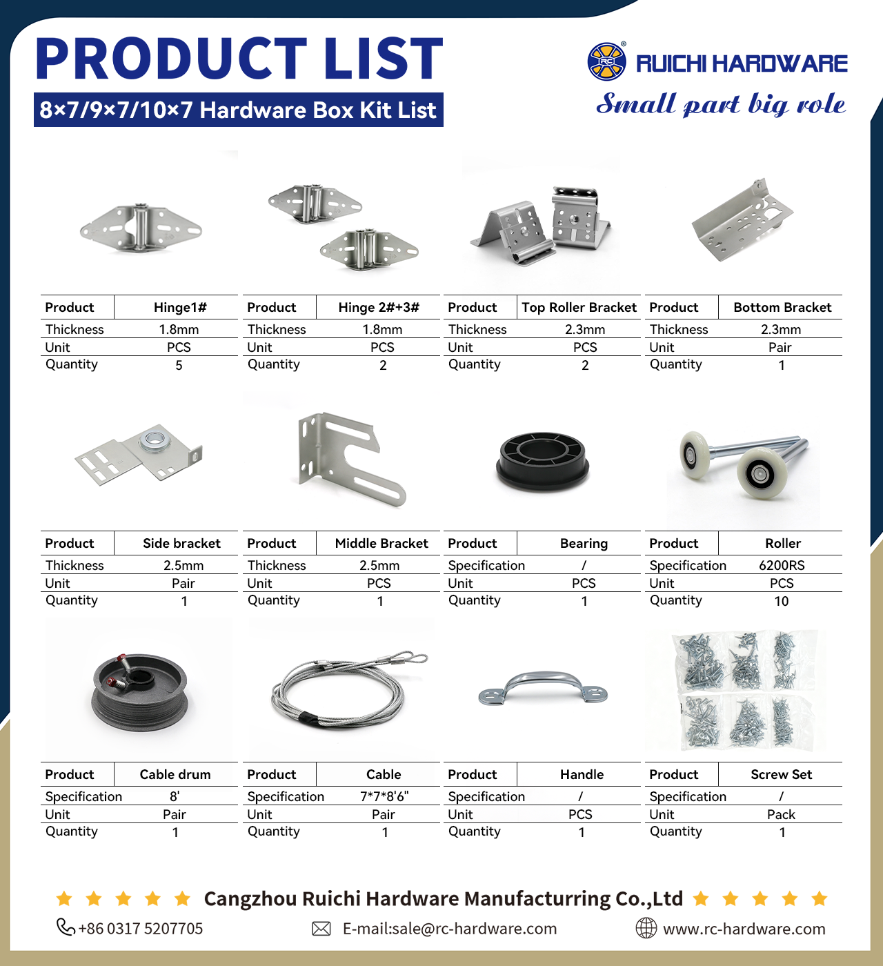 8×7 9×7 10×7 Hardware Box Kit List