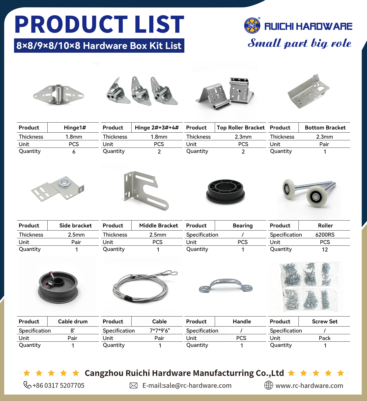 8×8 9×8 10×8 Hardware Box Kit List