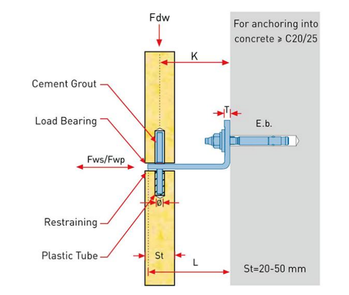 1. Suitable for concrete walls. Anchors are fixed directly on to concrete walls with expansion bolts.